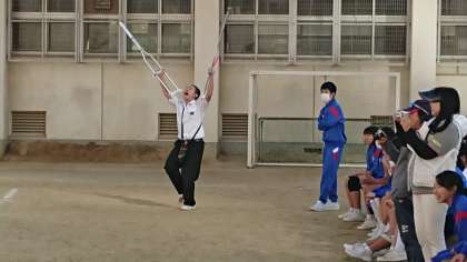 松葉づえの男子生徒も必死の応援!「いけ〜」