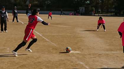キックベースボールは、1回になんと7点!素晴らしいキックをどうぞご覧ください。