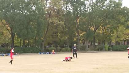 キックベースボールの2回戦も大量リードしています。守備も完璧です。