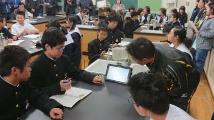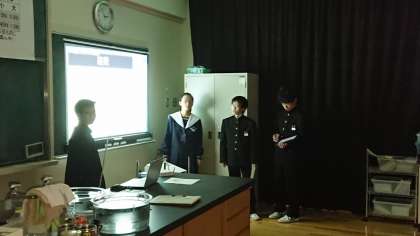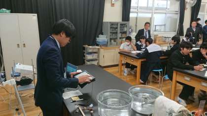 昨日、6時間目(1年2組 理科)に、本校 田中教諭による『研究授業』を行いました。