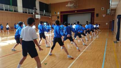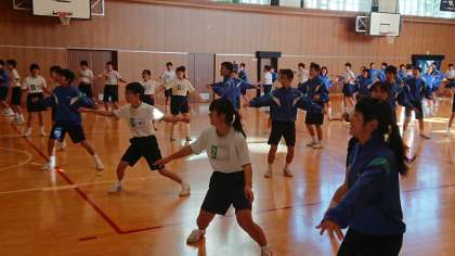 2年1・2組の様子です。ダンスレッスンは、2回目となりますが、まだ少し恥ずかしさがあるのかな?