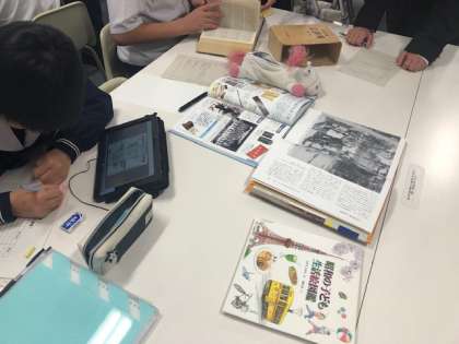 ディベートのためのリサーチをみんなで手分けして頑張っています!