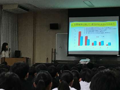 5時間目は養護教諭から先日のアンケートをもとに、二次性徴の時期の男女の意識の違いなどについてお話を聞きました。