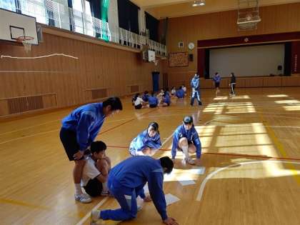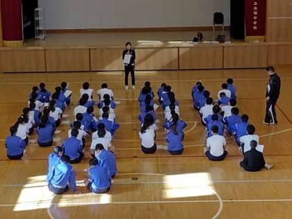2時間目の3年1組、3時間目の3年2・3組は、4回目の授業でした。先週までの様々なダンスステップを全体で復習した後、創作ダンスの説明を受け、グループごとに振り付けやステップを組み合わせてダンスの完成までを相談しました。