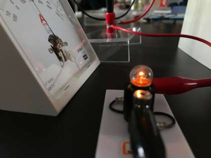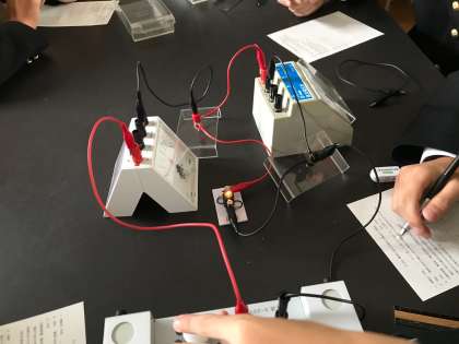 豆電球でオームの法則が成り立つかどうかについて実験しました。