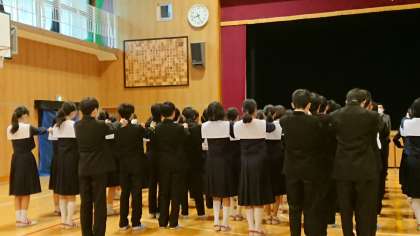 今朝は、1年生の学年集会がありました。担当の先生からは、ちびまる子ちゃんの『ちょっと良い話』がありました。