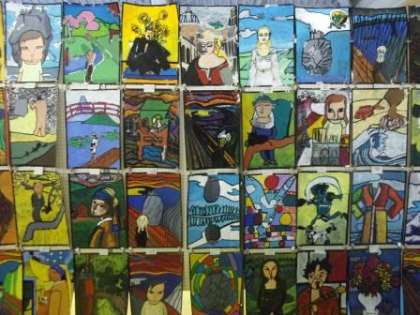 自分の気に入った名画を2点選び、それぞれ分解し、1枚の絵画にステンシル