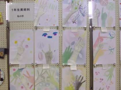 自分の手のデッサンとモダンテクニックによるイメージ表現を組み合わせて作