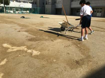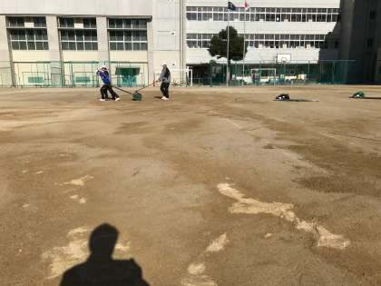 夜に降った雨でグランドがぐちゃぐちゃです。