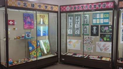 北区役所1F 区民交流プラザに、本校生徒の作品が展示されています。