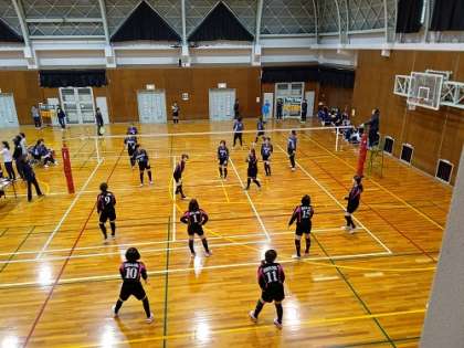 本日、日曜日に北スポーツセンターにおきまして、北区PTAのバレーボール大会が、開催されました。午前中の北稜中チームは堀川小との対戦になりました。第一セットは21対9で、先取しました。