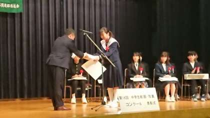 『第16回 中学生絵画・写真コンクール』において、3年生 船引 愛さんが特別賞(シード賞)を受賞