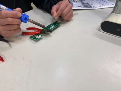 ラジオの製作です。今日は抵抗器とセラミックコンデンサ、ダイオードを半田付けしました。