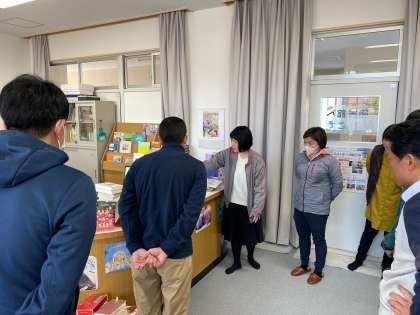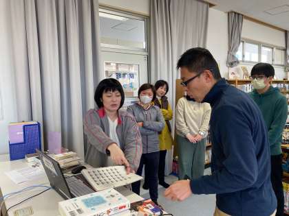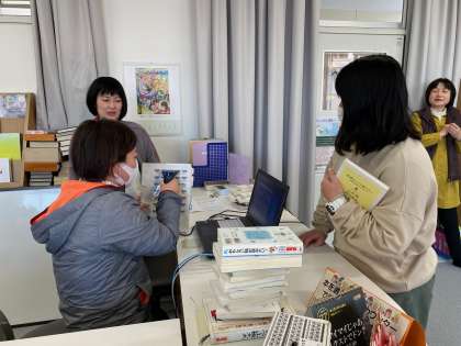 開館に先立って、図書の貸し出し手続きについての校内研修を実施しました。