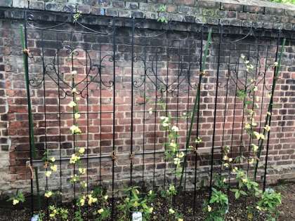 管理作業員さんが、校舎裏にお洒落な柵を作ってくださいました!黄色の花はモッコウバラです。