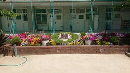 玄関の芝桜も、校庭の花壇の花も美しく咲いて、子どもたちを迎えてくれました。