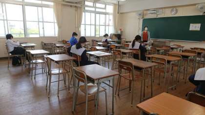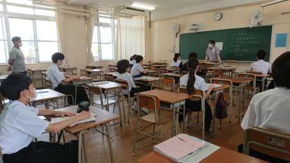 密集・密接を避けるため、ひと教室15名以下にしています。少し寂しい感じですが、今はしかたありませんね!