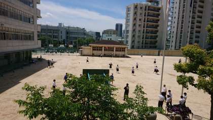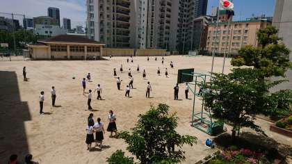 1年生は、初めての学級ボールかな?ちょっと遠慮ぎみに運動場のすみでバスケしたました。でも、楽しそうです。