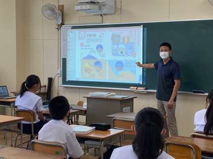 本校では教室にプロジェクターを常設して授業に活躍しています。