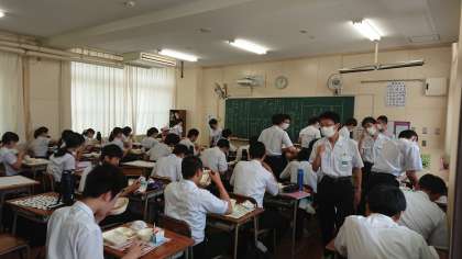 生徒の皆さん、感染拡大防止に高い意識を持って取り組みましょう。「コロナに負けるな!」