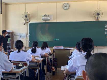 2年生の教室では日差しに邪魔されることもなく、比較的映像が見やすいです。