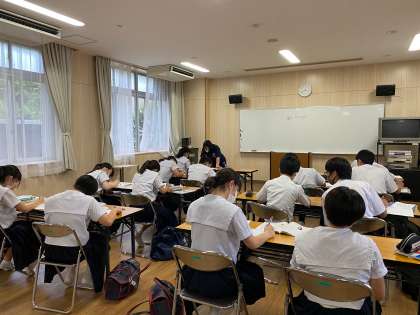 テスト1週間前に入った本日放課後、数学を勉強するために残っている1年生と3年生の生徒たちです。