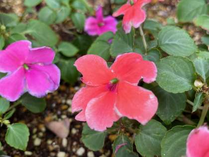 今年は本校の花壇にもインパチェンスを植えていただきました。登校したときとか、昼休みとか、部活後のボール探しのときに、どの花か確認してみてください。