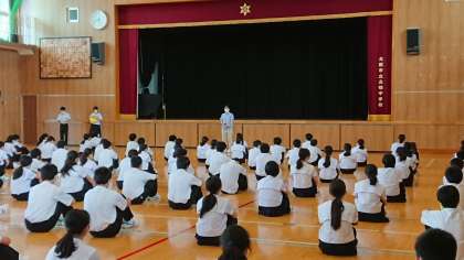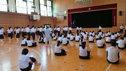 担当の先生からは「前任校は、小規模な学校でしたが、外国にルーツのある生徒が4割いました」「配布するプリントにルビをつけたり、英語だけでなく使われている言語が多数であったりで、たいへんなこともありました」「しかし、生徒たちの間では、お互いに分かりあえるための工夫が色々されていました」「そのことで、みんなに考える力が身についてきたように感じました」「外国籍の友だちに限らず、目の前の友だちが困っていたら、何を困っているのか?どうしてあげたら解決できるのか」「そういうことを考えられることは、相手のためにも、自分のためにもなると思います」という内容のお話でした。