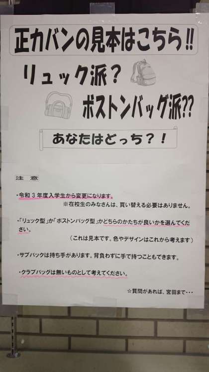 生徒の皆さんが、もし来年度の新入生だったら、どっちのかばんが良いですか?