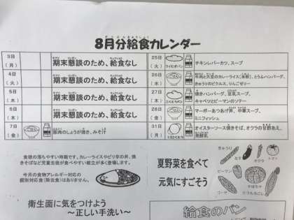 8月分の給食について