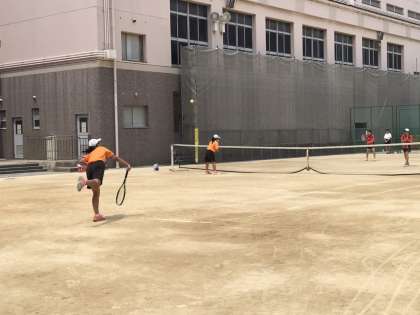天満中学校と試合をしました。最後まであきらめずに粘り強いテニスで優勝することができました。