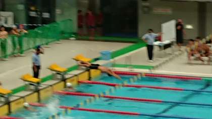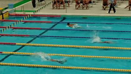 男子400Mメドレーリレー3年 第3泳者(バタフライ)の泳ぎです。
