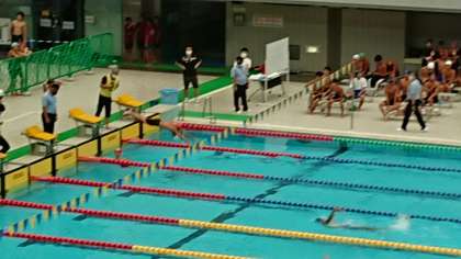 男子400Mメドレーリレー3年 第2泳者(平泳ぎ)の泳ぎです。
