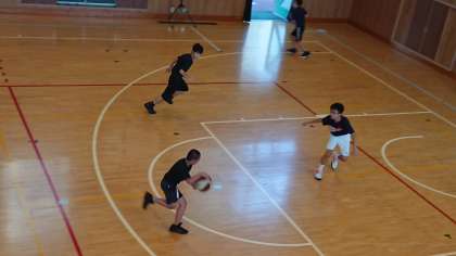 午後は、体育館で男子バスケットが練習に汗を流していました。