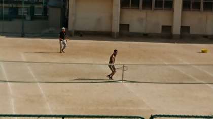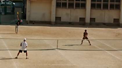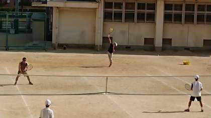 社会研究実習で部活動の指導を行ってくれている高野江先生と顧問の先生も生徒相手に汗ぼとぼとで頑張っています。