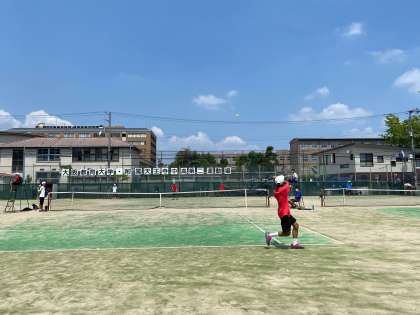 猛暑の中一生懸命に練習してきた、得意の耐久型のテニスで一回戦に勝利しました。