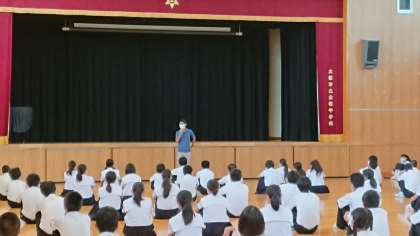 今朝は、2年生の学年朝礼がありました。担当の先生からは、青年海外協力隊の経験から、タンザニアとケニアの国のお話がありました。