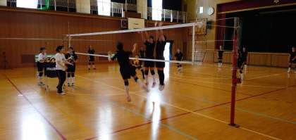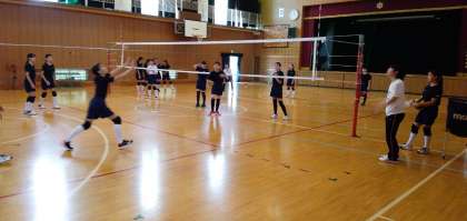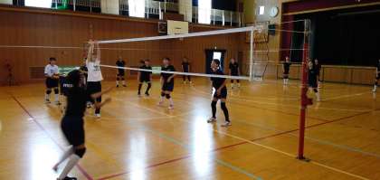 バレーボール部が午前中、本校で練習していました。今年は1年生もたくさん入り、総勢20名で活動してます。活気があり、楽しそうに練習しています。まだまだ暑い日が続く中でこまめに水分補給をとり、熱中症対策をしながらの練習でした。1年生もスパイク練習や、コートに一緒に入って練習しています。