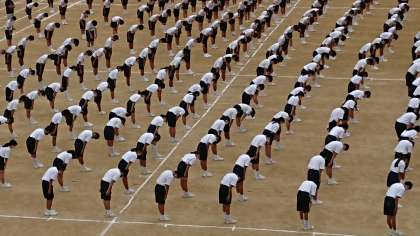 開会式の練習の様子です。「北稜中学生の礼儀正しさがよく表れています!」