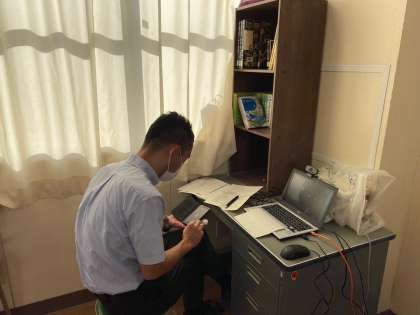 担任の先生が、早朝から配信テストの準備をされています。