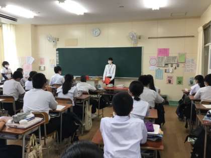 英語の授業の初め、教育実習生の自己紹介がありました。