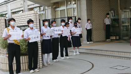 朝、7名の立候補者が正門に立ち、挨拶運動をしています!