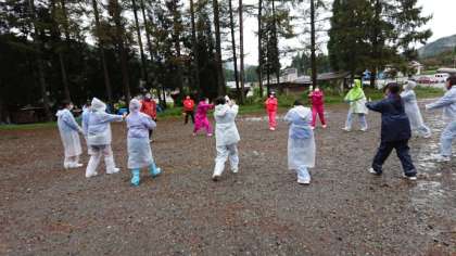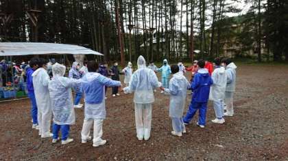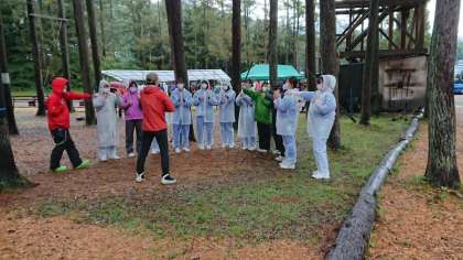 ローエレメント体験の様子です。みんなで心をひとつに、作戦を立て、協力して行うことを目的にしています。