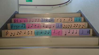 あらっ、階段に楽譜が???
