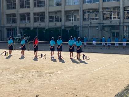 本日、阿倍野高校にて団体戦の試合がありました。先輩に負けないように、1、2年生も頑張ってくれました。どの試合も接戦でしたが、最後は勝つことができました。