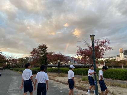 本校のそばを流れる大川沿いでのランニングの季節です。