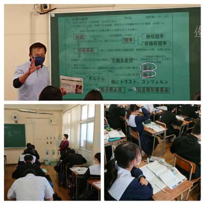 なかなか難しい内容ですが『半沢直樹』のドラマを例にあげるなど、様々工夫されていました。授業用パソコンを有効に活用し、たいへん分かりやすい板書でした