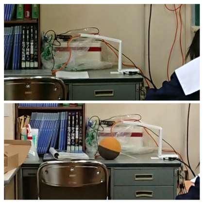 理科の授業では、書画カメラ(一番下の写真の白いデスクライトのような物体)を使って様々な教材を一瞬にして映し出して(教科書・プリント・問題集等々)説明をされていました。たいへん便利な機器です。