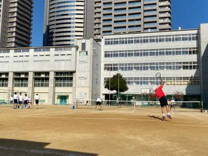 男子テニス部の練習にはしばらく振りで3年生が参加しています。