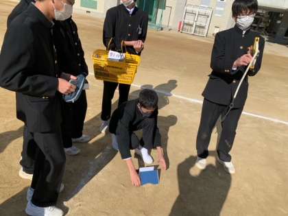 3年数学特別課題として、校舎の高さを測定しました。